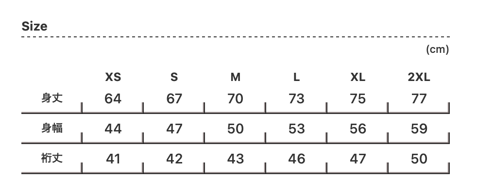 ・サイズ:S, M, L, XL, 2XL ※詳しいサイズは画像のサイズチャート参考