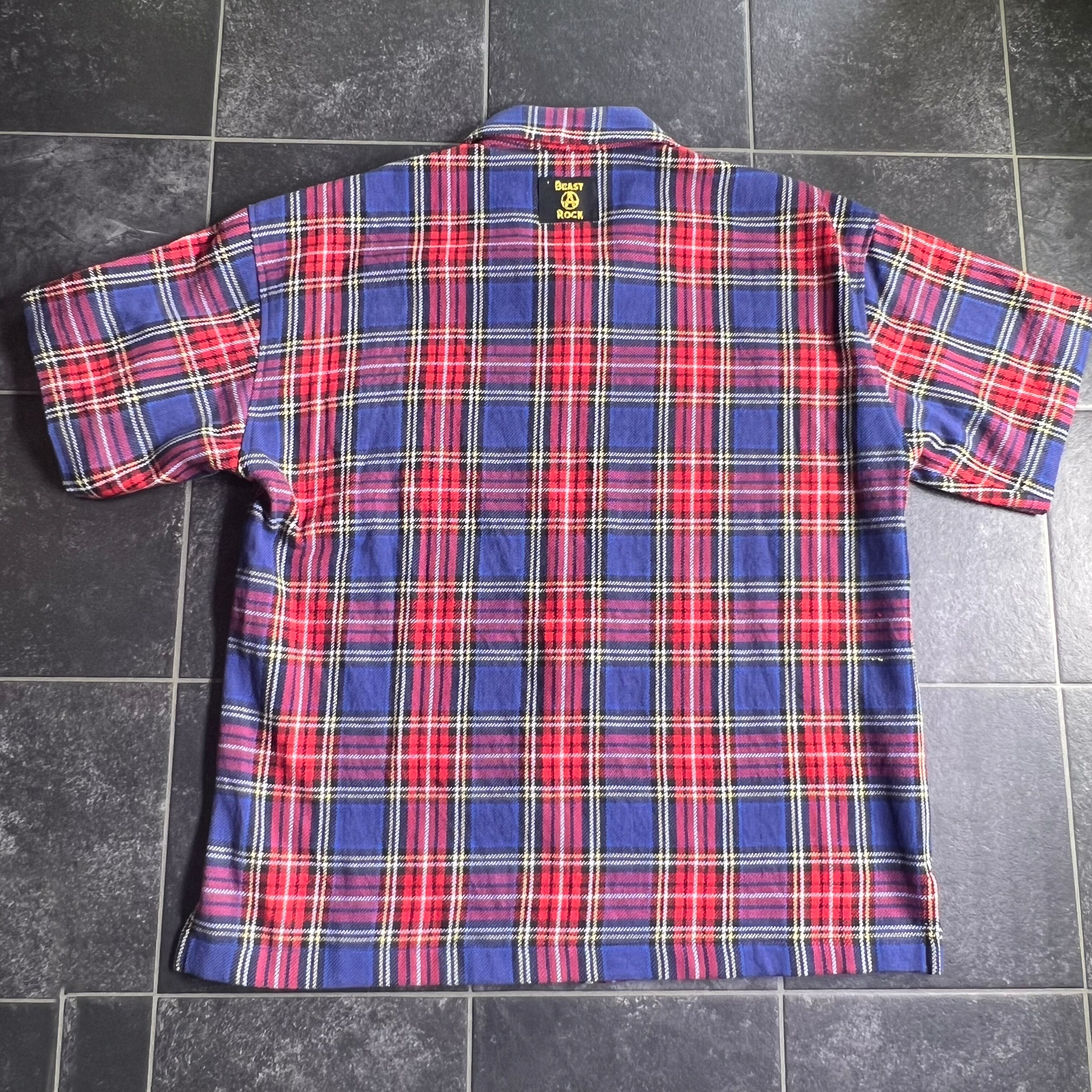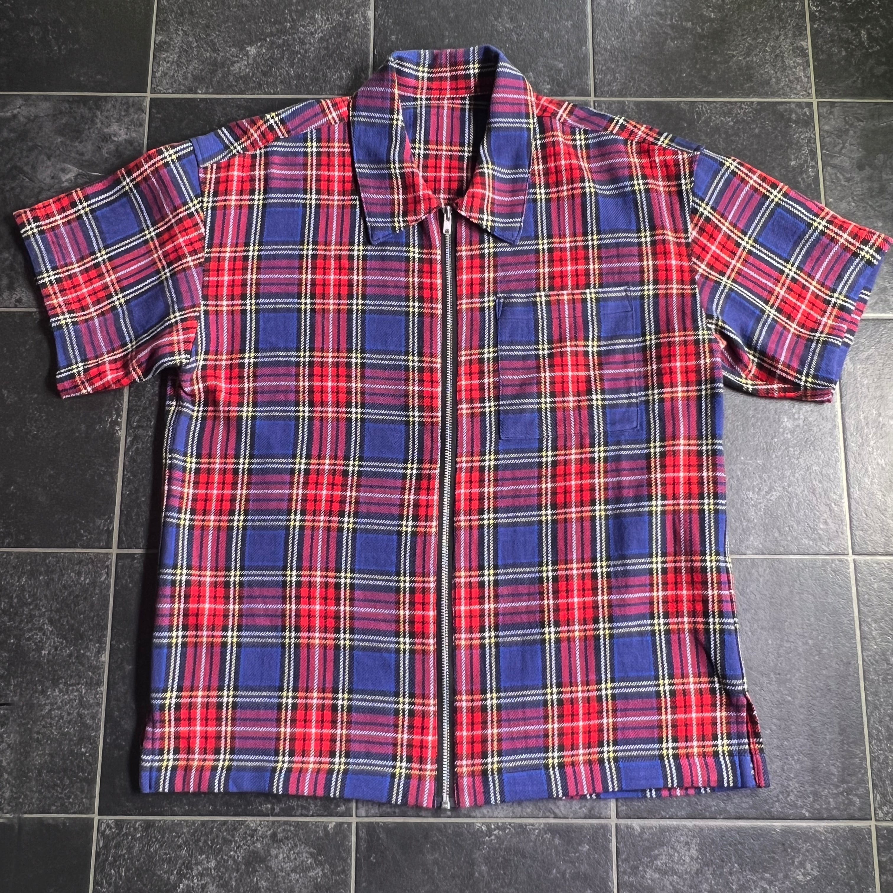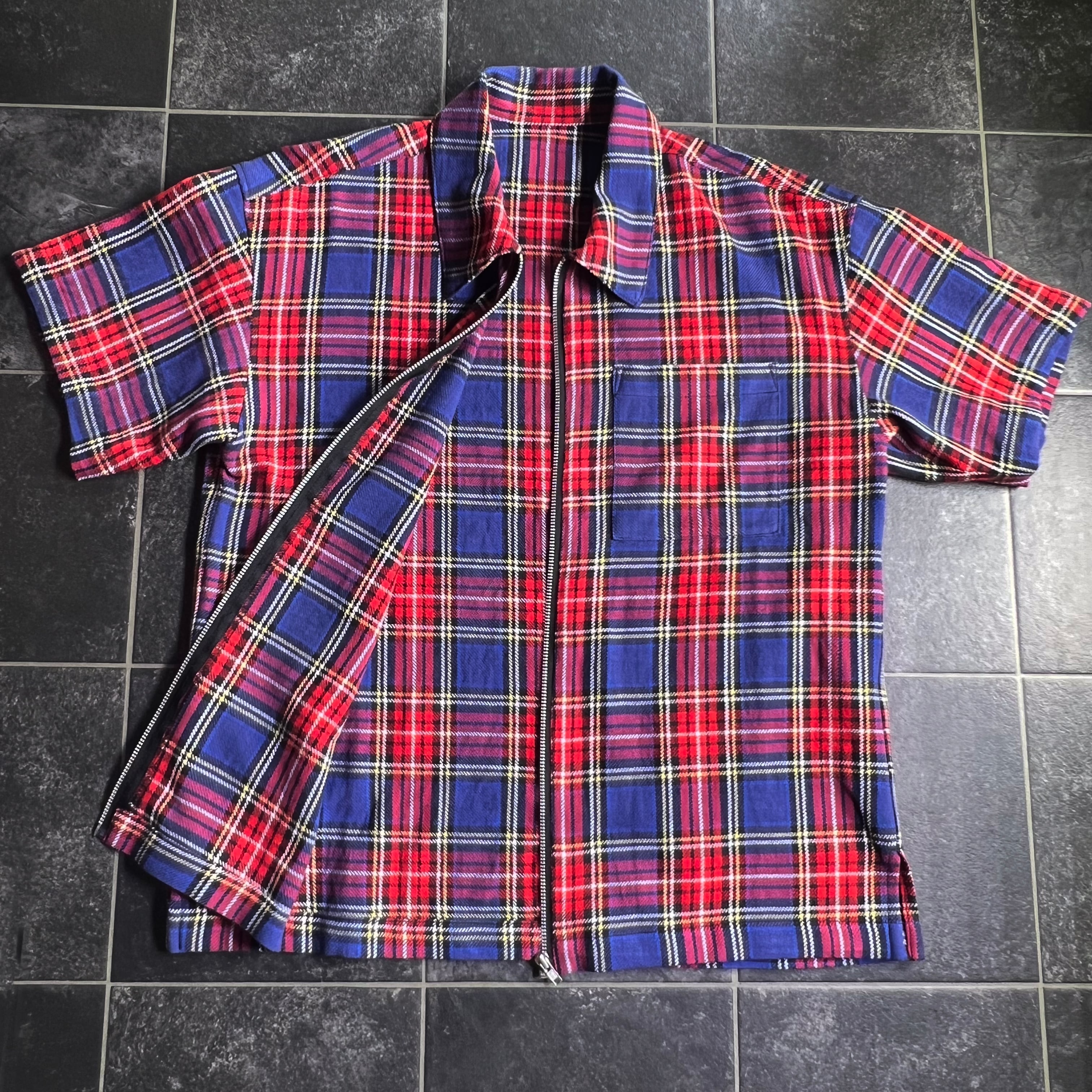 クラシックな大ぶりタータンチェックを使用したジップシャツ。