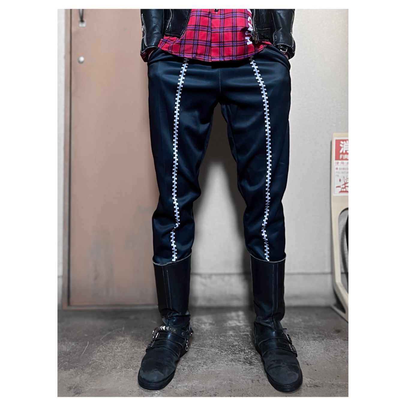 ブーツとの相性抜群でシンプルながら主張のあるハードな雰囲気に。
