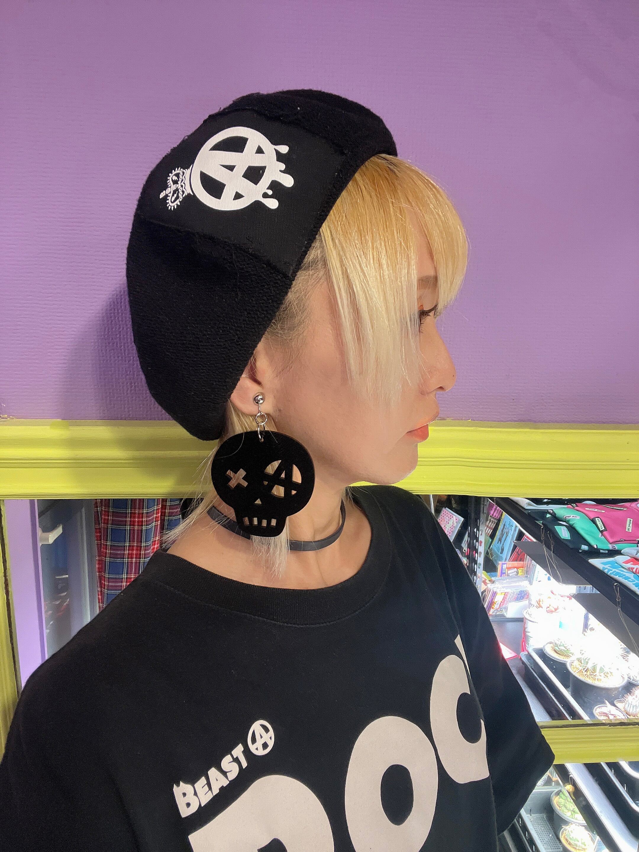 耳元で揺れる縦横7cmのBIGスカルが圧倒的存在感。