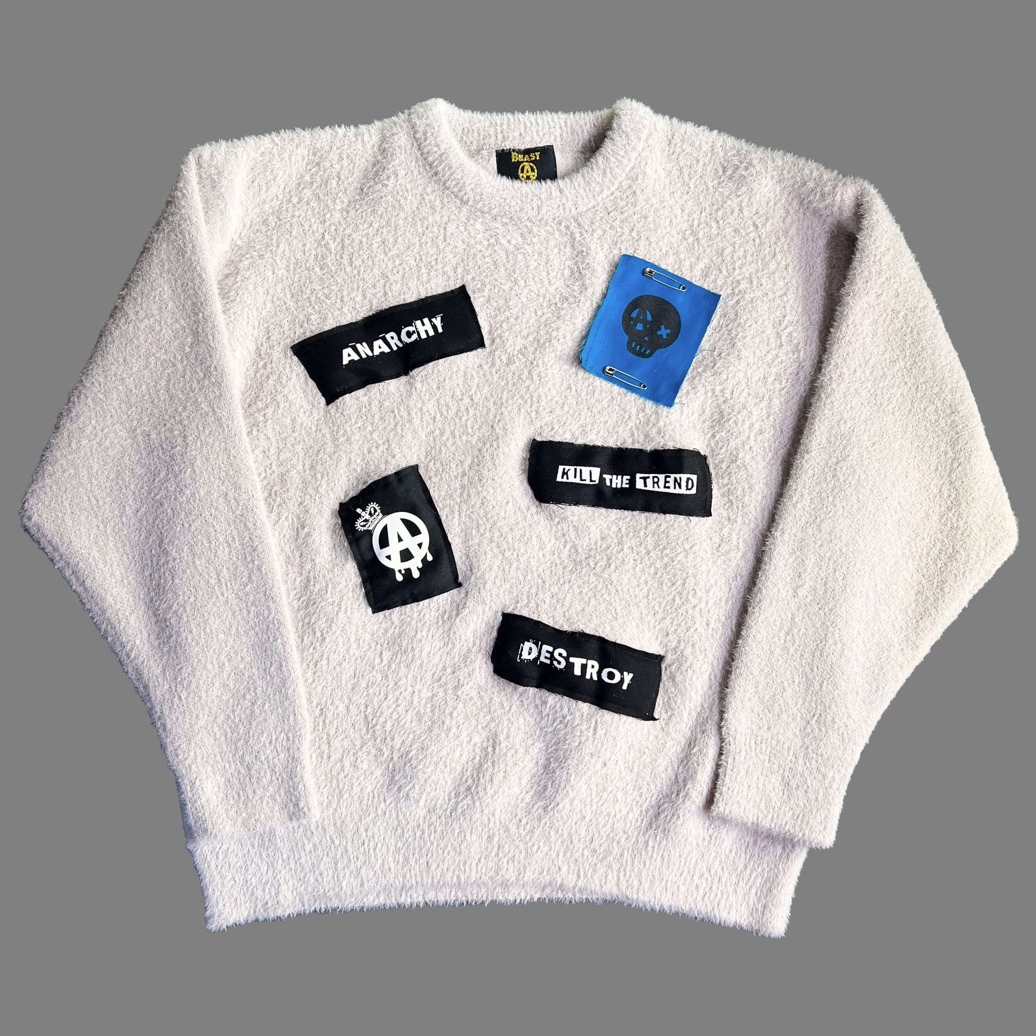 DIYパンクの空気をそのまま落とし込んだシャギーニット。