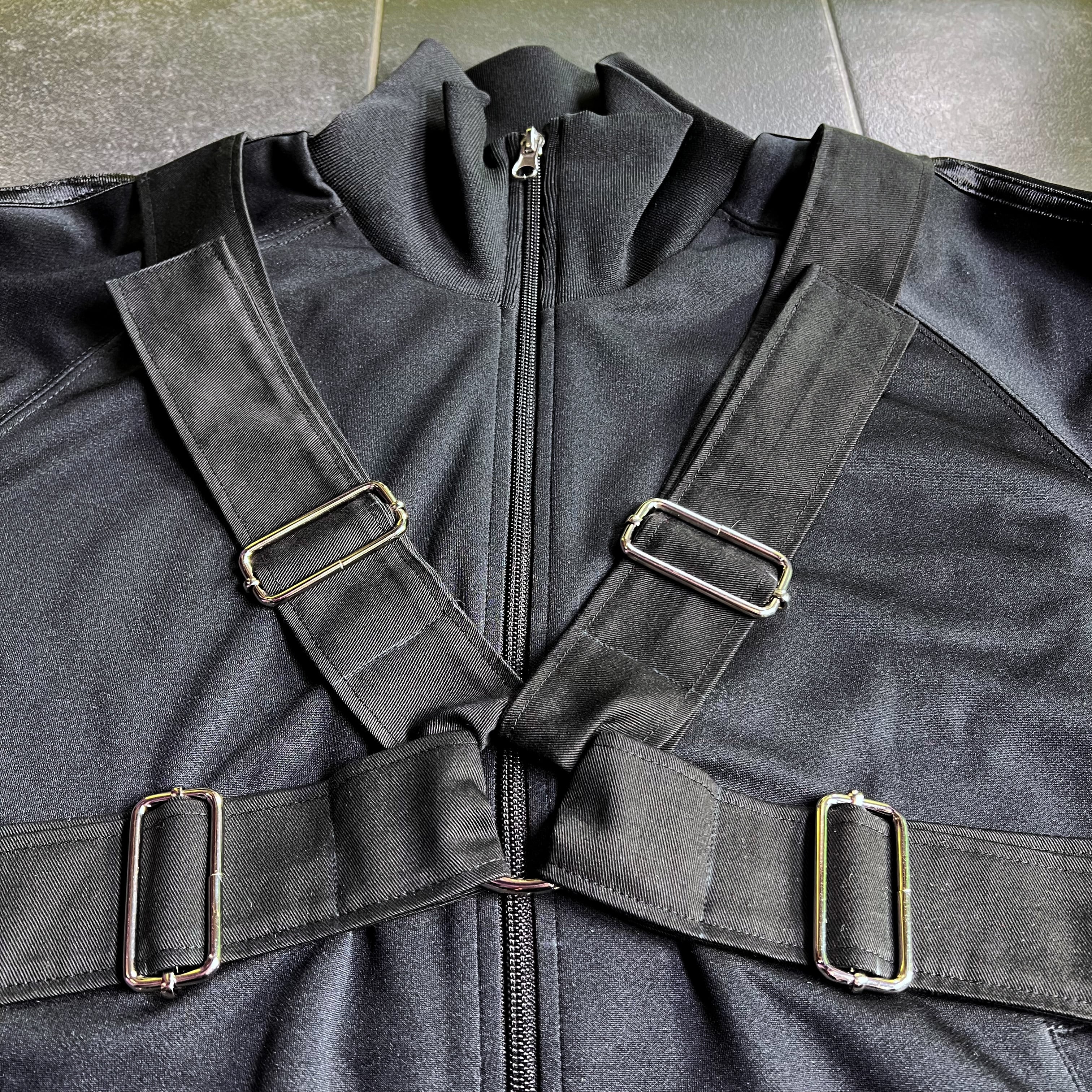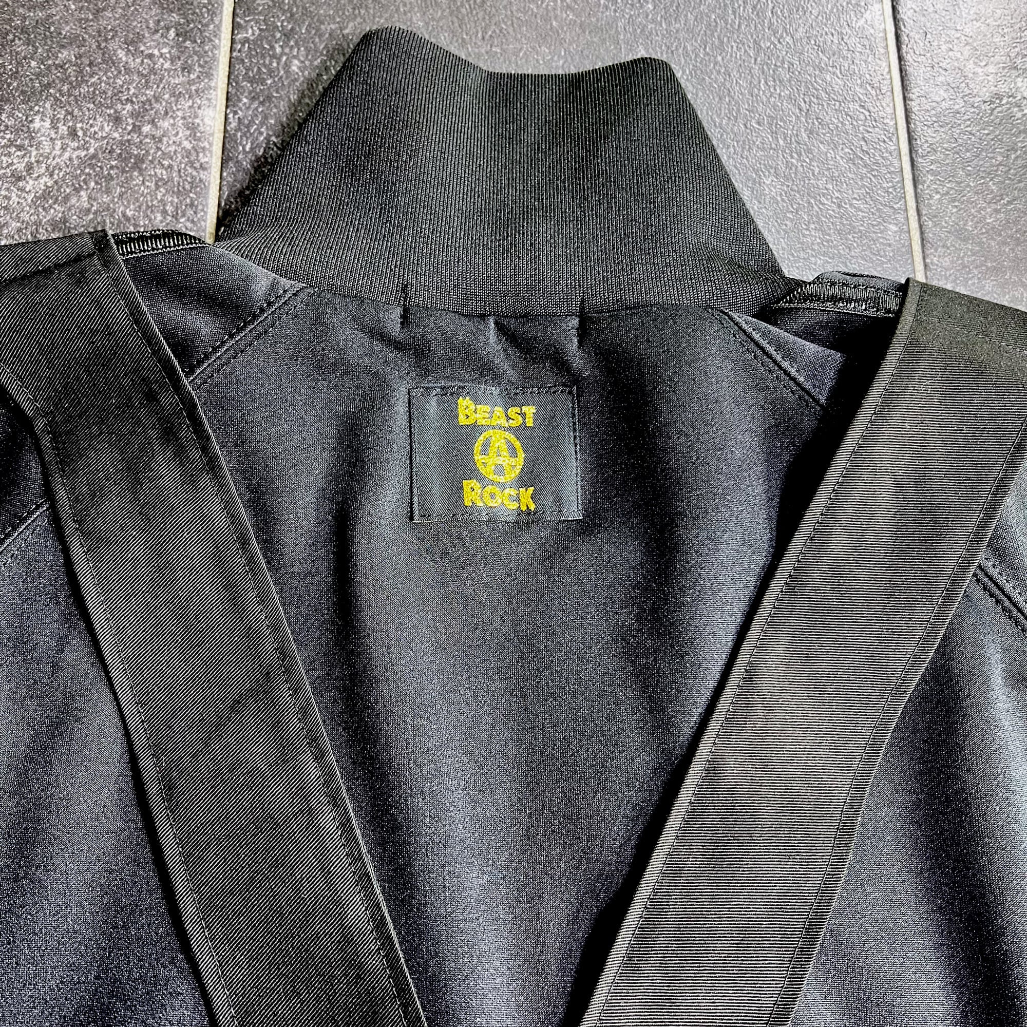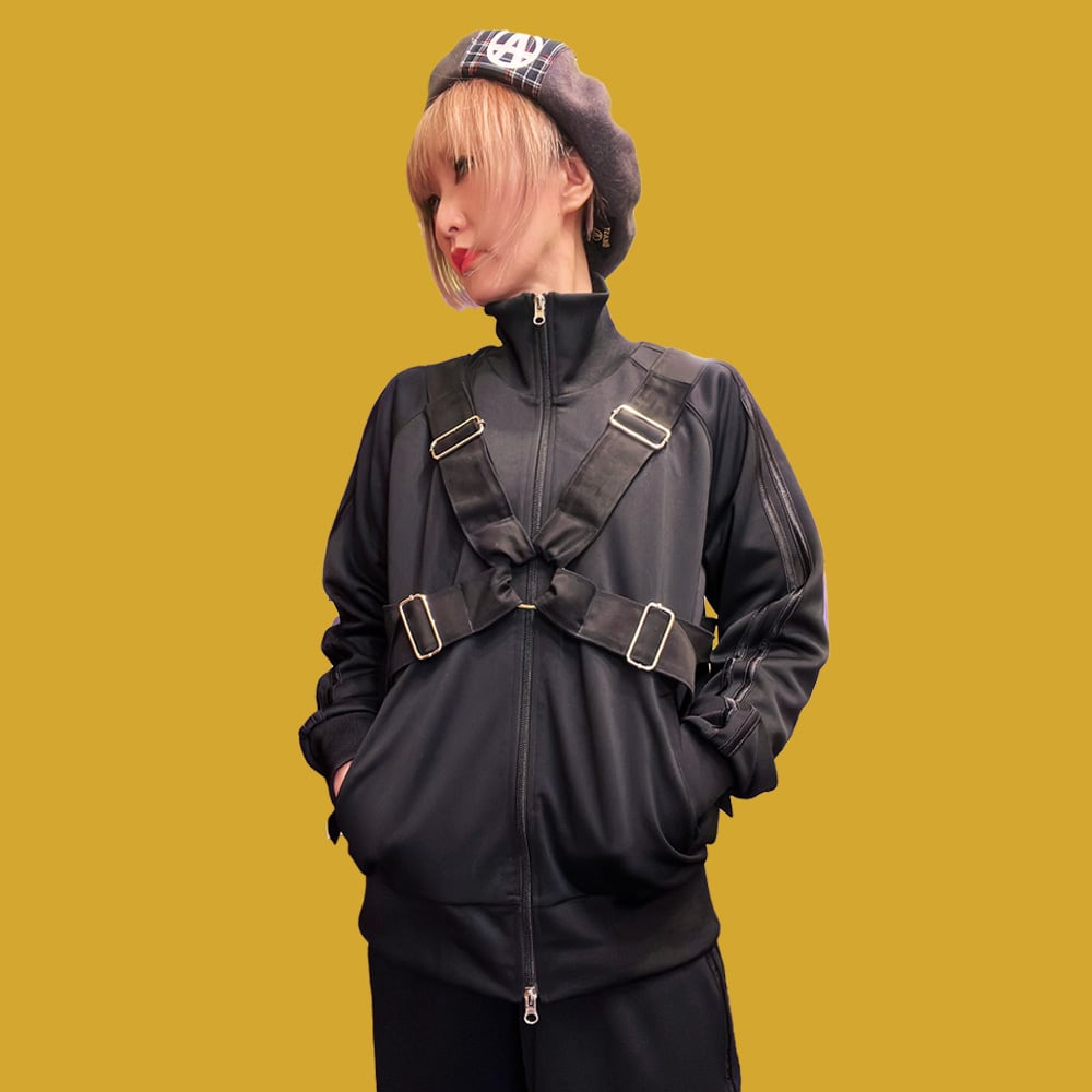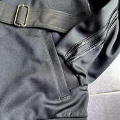 このジャケットはディテールをなるべく崩さず、フロントにはカラビナ構造の金具を使用し前開きで着用できる構造に再設計。