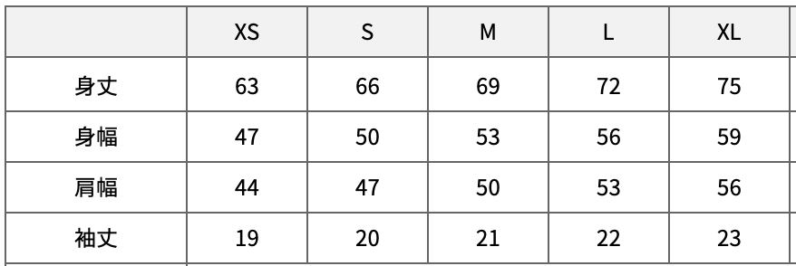・サイズ:S / M / L / XL ※詳しいサイズは画像のサイズチャート参考