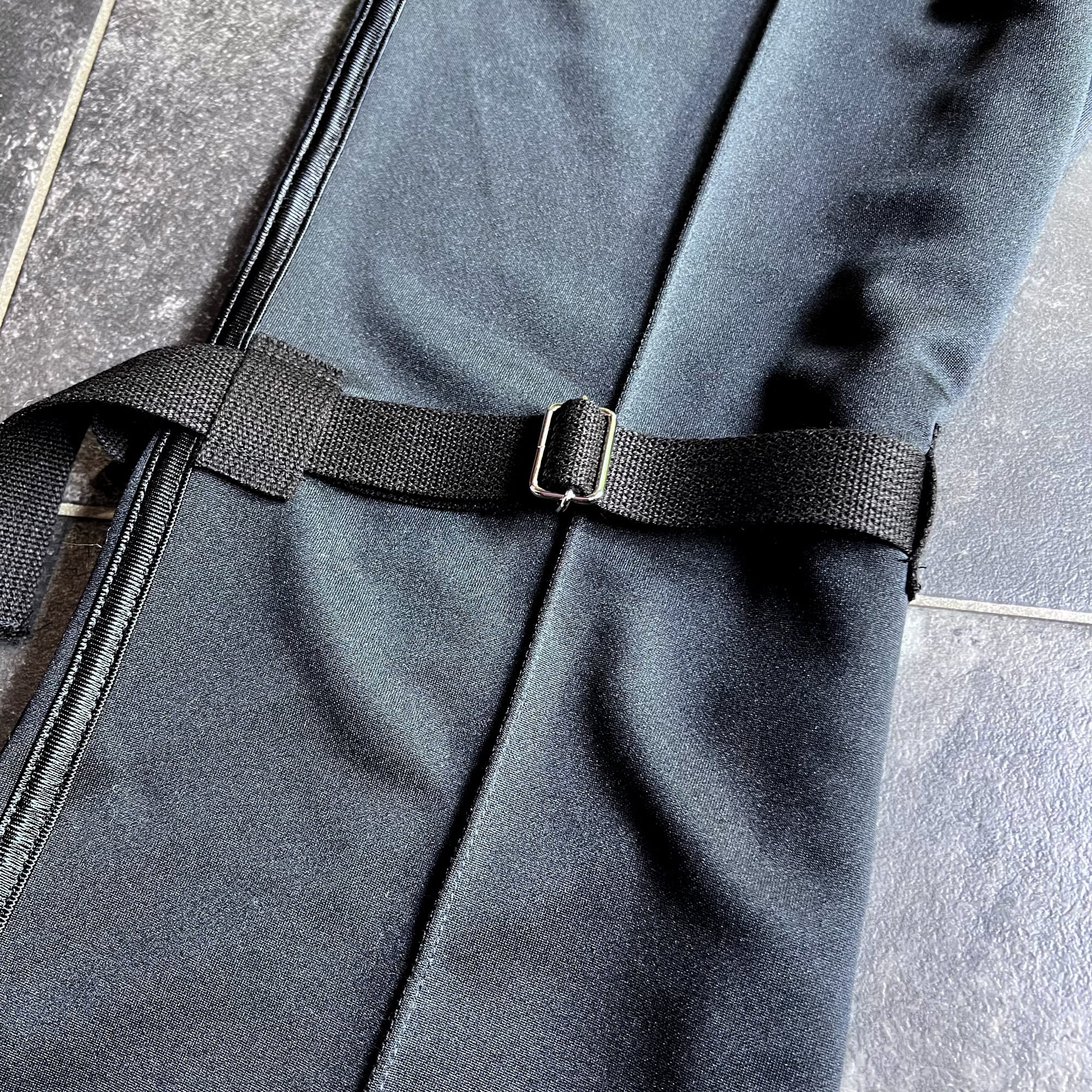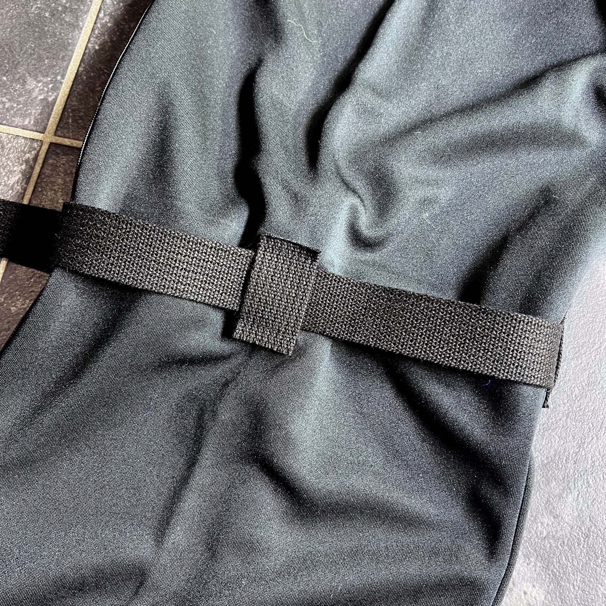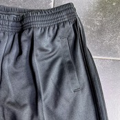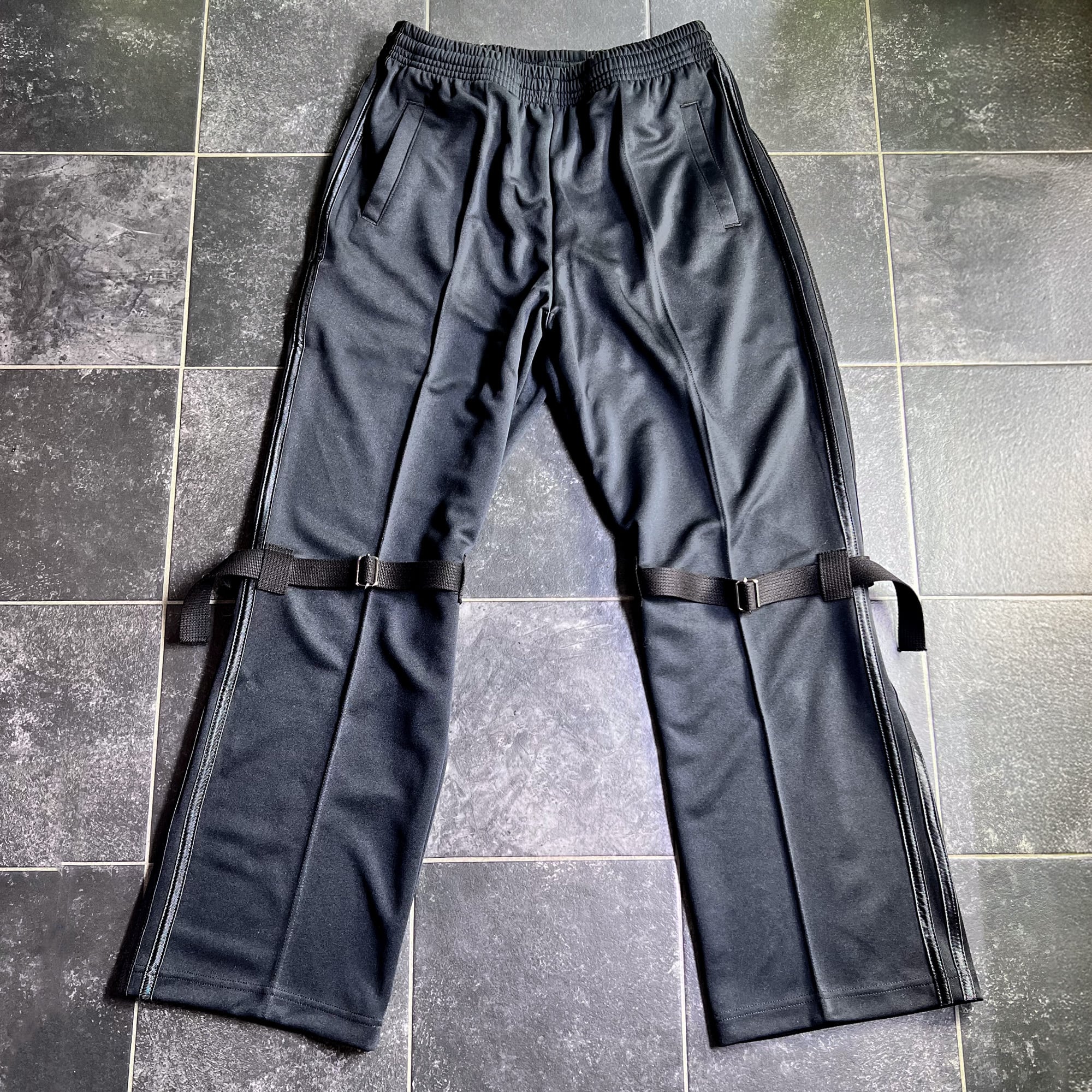トラックパンツにボンテージパンツのニュアンスを落とし込みました。