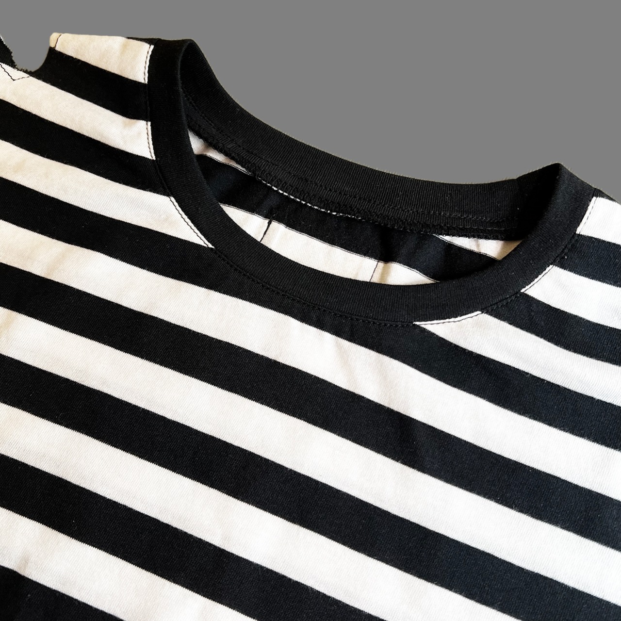 ガーゼシャツのディテールを再現しつつも、ボーダー柄でカジュアルに着ることができる一枚。