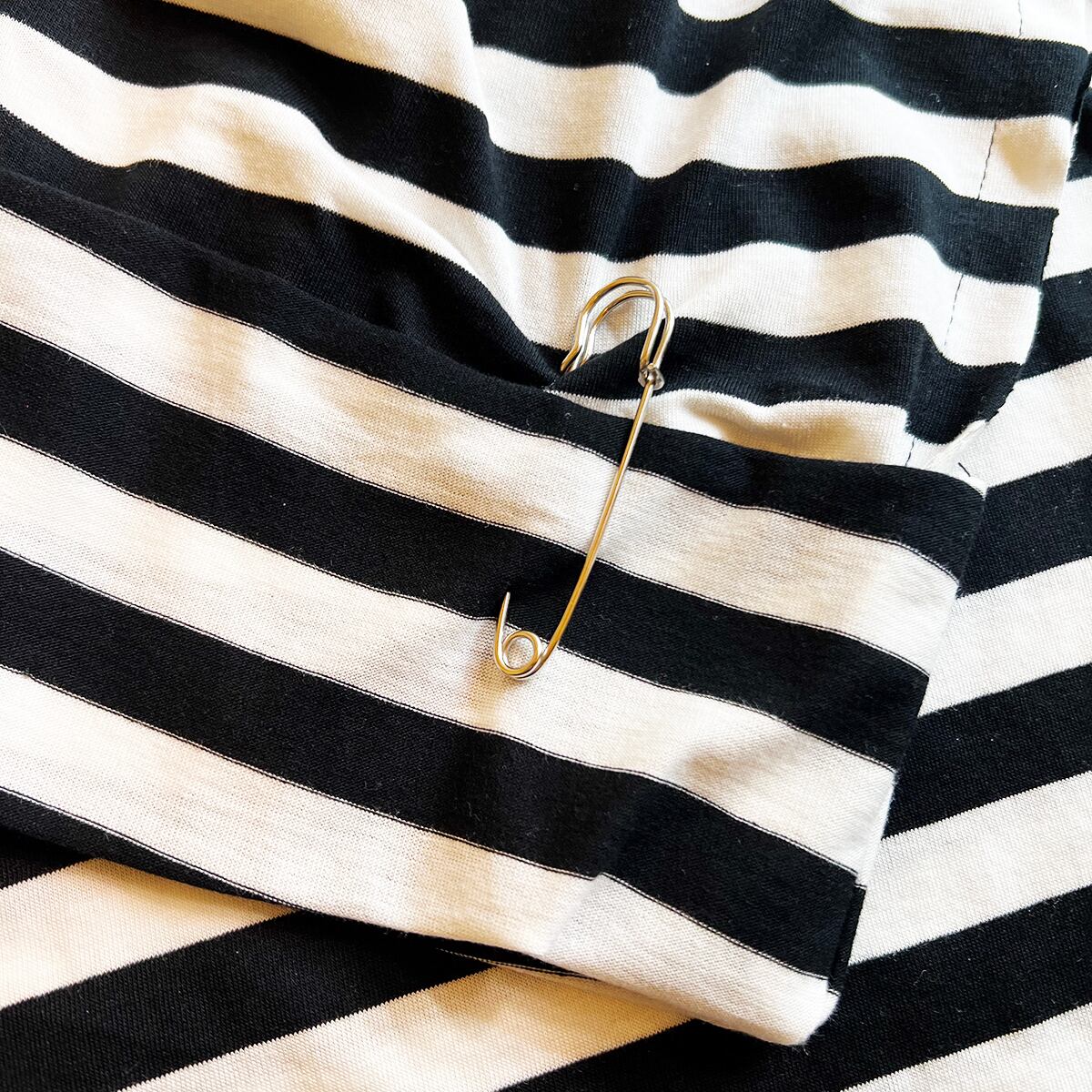 袖を折り返して止められる、7cmカブトピン2本付き。(写真参照)